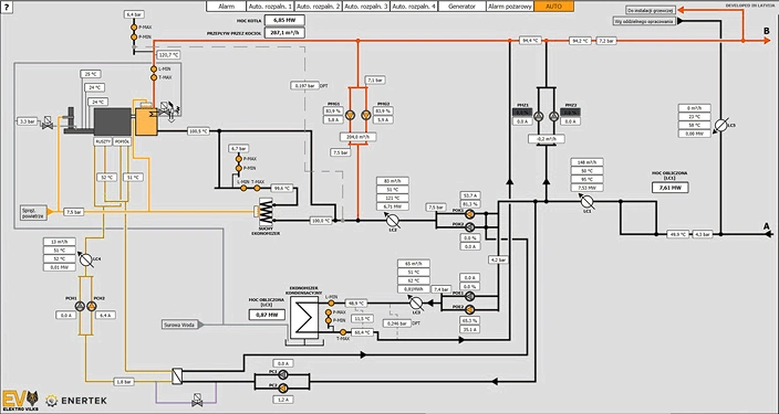 Jaunas komunālās katlumājas automatizācija, Ełk pilsētā Polijā. Projektā realizējām pilnu katlu mājas automatizāciju – sūkņu vadība, šķeldas padeve, degšanas procesa kontrole, pelnu izvešana un drošības uzraudzība.